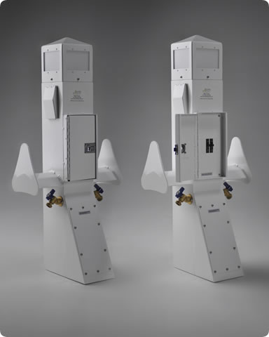 Accmar Equipment’s 45” model power pedestal can accommodate outlet capacity up to five Hubbell or Marinco receptacles (up to 200 AMPS max per pedestal), two water faucets, two hose holders as well as dual TV/phone, high speed internet and electric metering. Stainless steel casing & custom colors are available upon request.